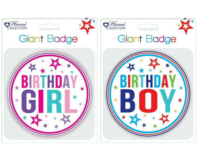 6" Giant Happy Birthday Party Large Badge Blue Pink Boy Girl Male Female
