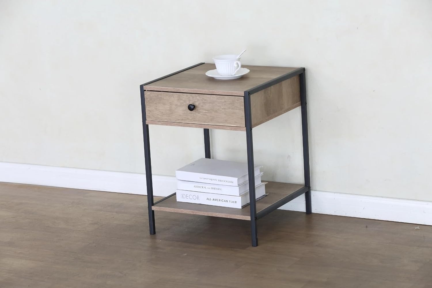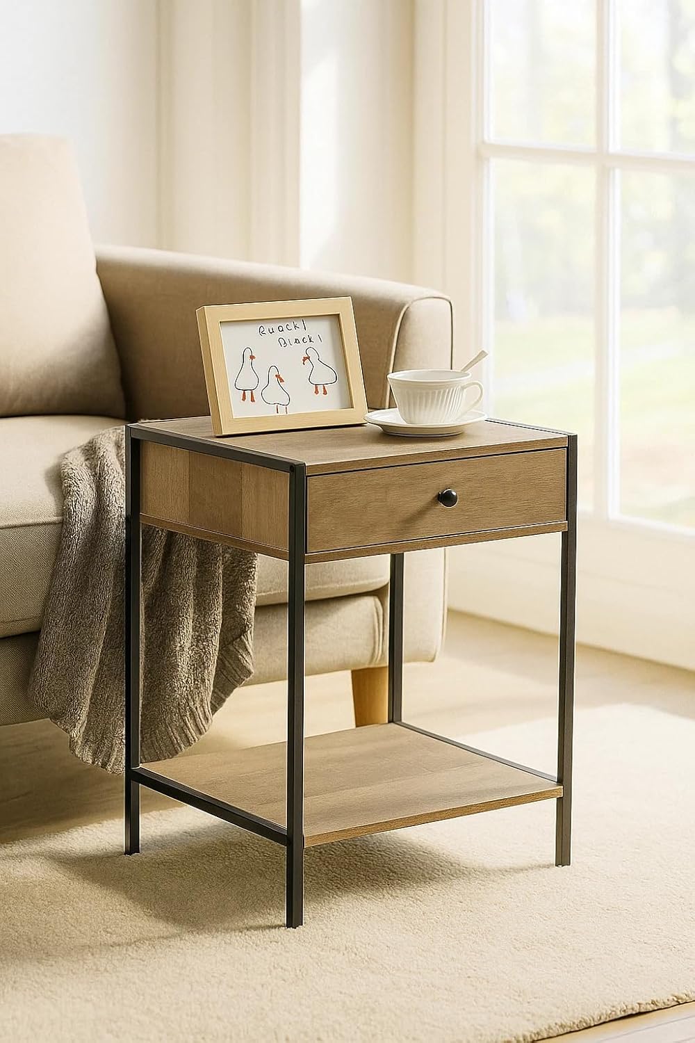 - Functional Storage: Features a handy drawer with a sleek round knob for keeping essentials neatly tucked away, alongside a lower open shelf ideal for books, decor, or storage baskets.