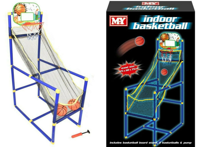 New Kids Indoor Outdoor Arcade Style Basketball Stand With Net Hoop Balls Pump