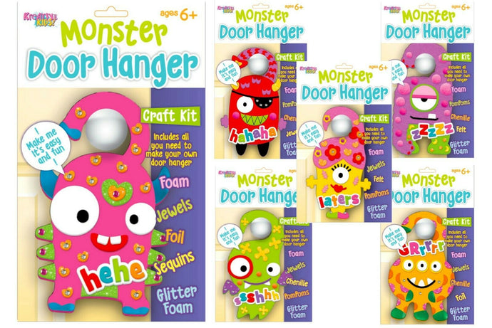 Childrens Craft Kits - Glitter Foam Monster Door Hanger - 6 Designs - Sequins 6+