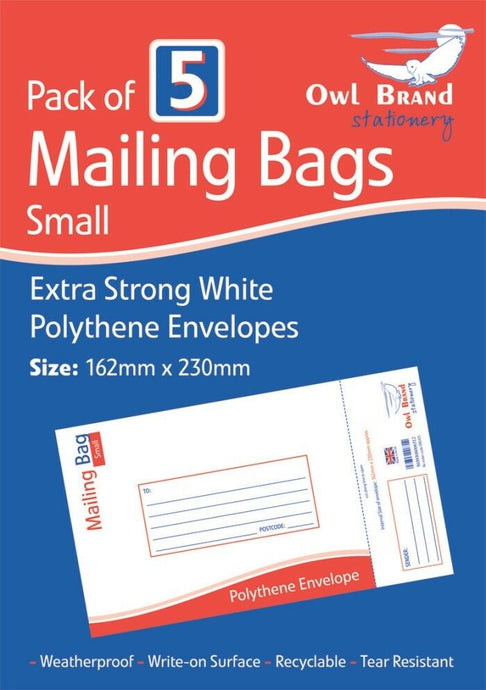 Pack of 5 Small Mailing Bags White Polythene Envelopes Extra Strong Postal Bag